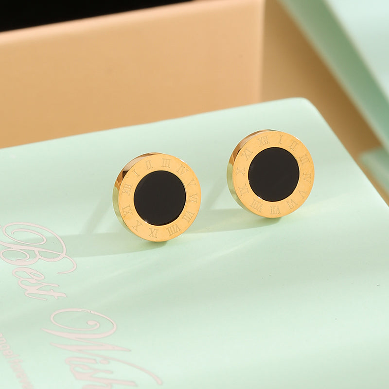 A21 - Aretes centro negro. Color dorado. Acero inoxidable.