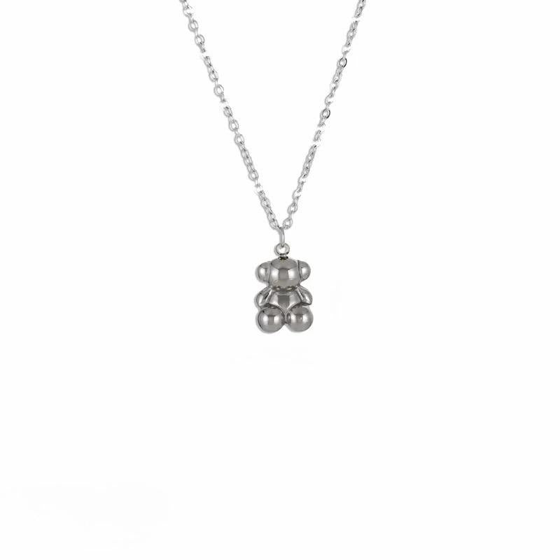 C01 - Collar dije de osito. Color plateado. Acero inoxidable.