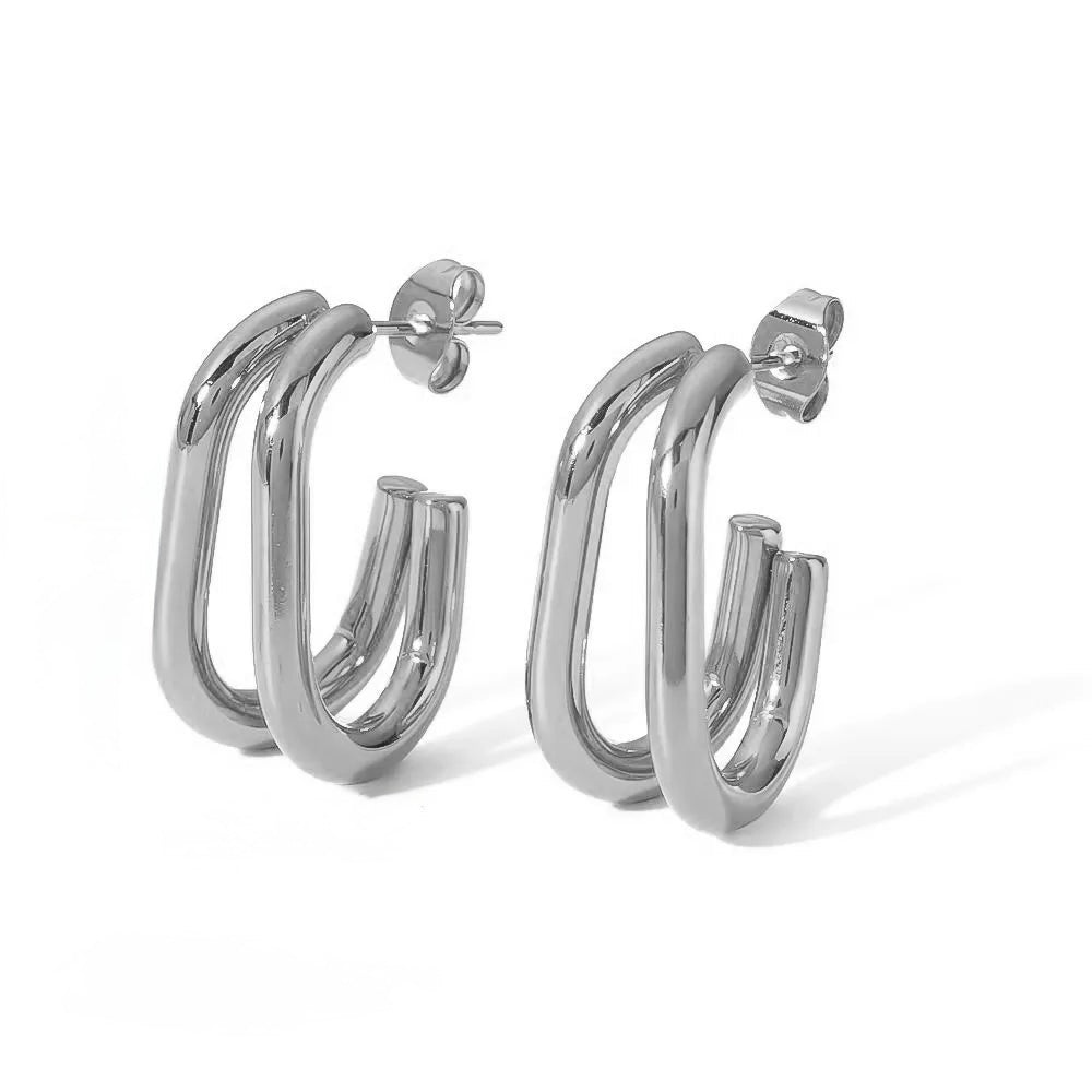 C15 - Arracadas medianas dobles. Color plateado. Acero inoxidable.
