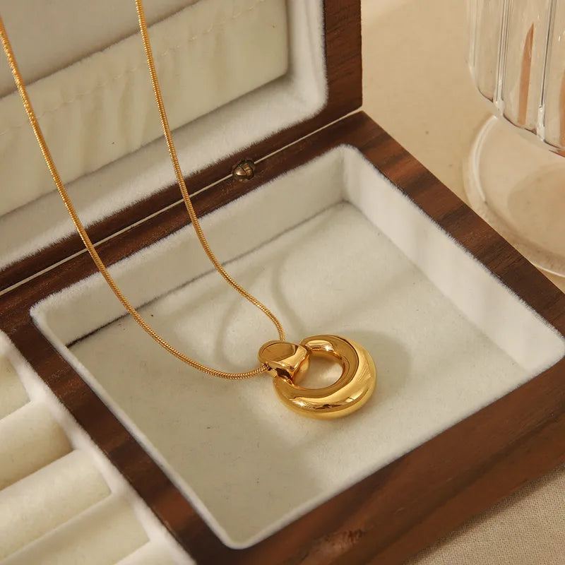 A20 - Collar con dije redondo. Color dorado. Acero inoxidable.