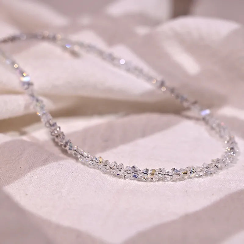 M06 - Collar corto de cristales transparentes. Bisutería.