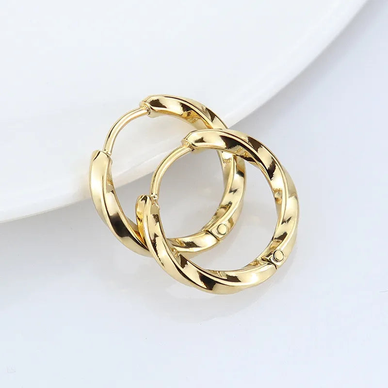 D20 - Arracadas torcidas. Color dorado. Acero inoxidable.
