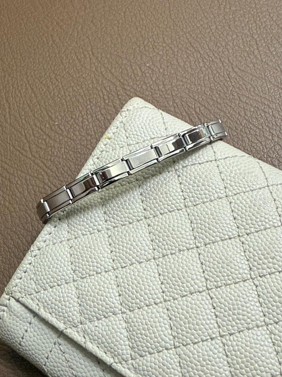 E05 - Pulsera Italiana. Eslabón Rectangular Alargado. Color Plateado. Acero Inoxidable.