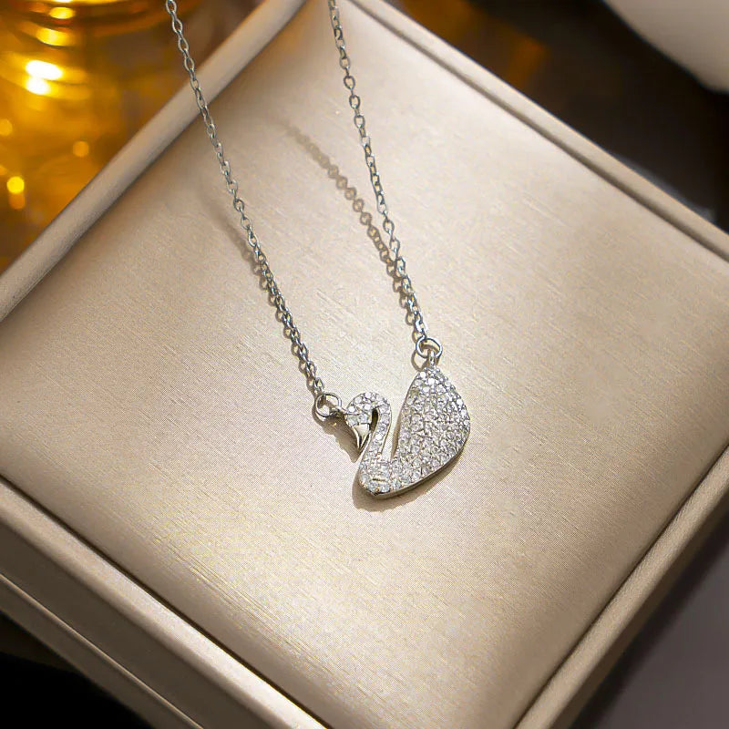 J02 - Collar cisne con circonia. Color plateado. Acero inoxidable.
