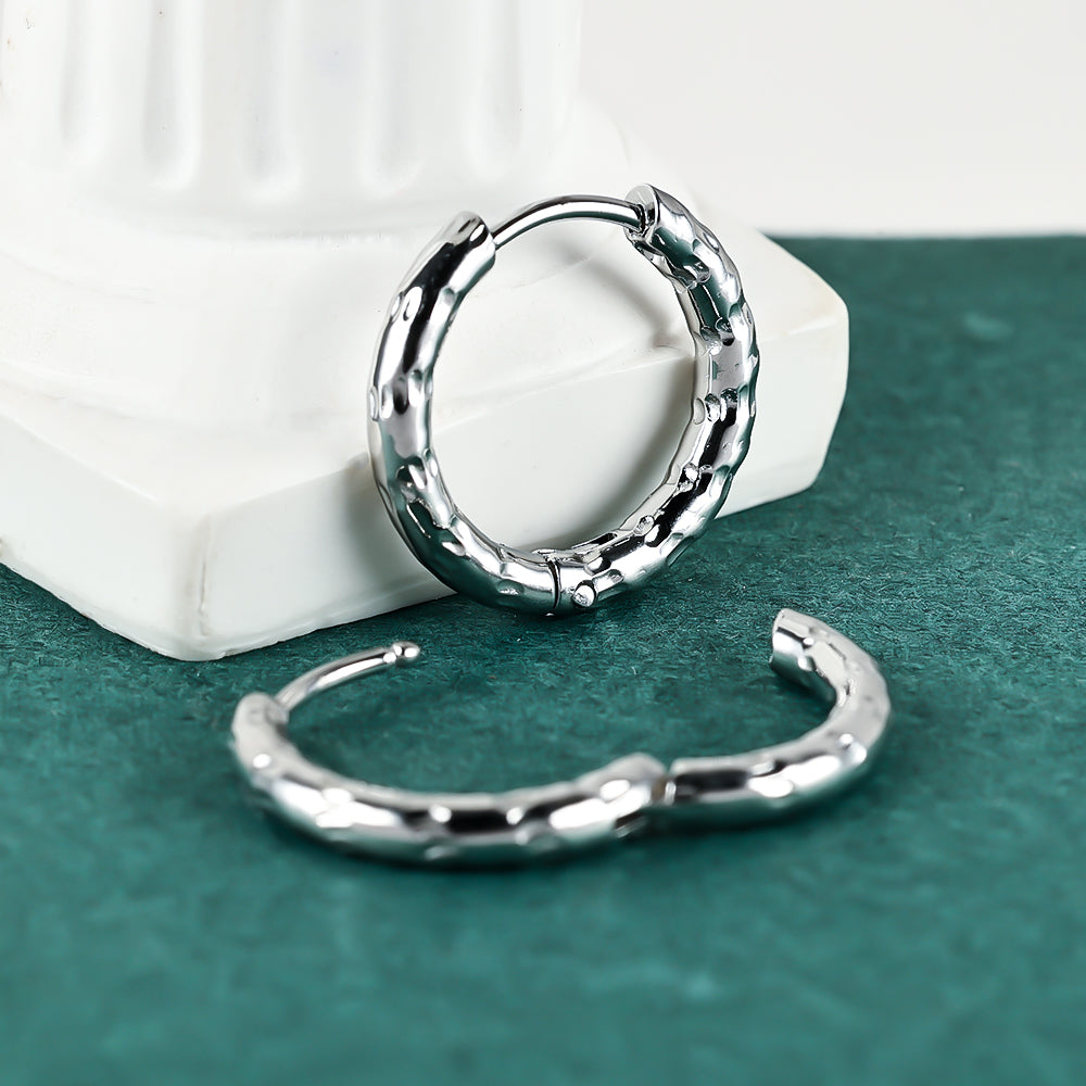 J20 - Arracadas con textura. Color plateado. Acero inoxidable.