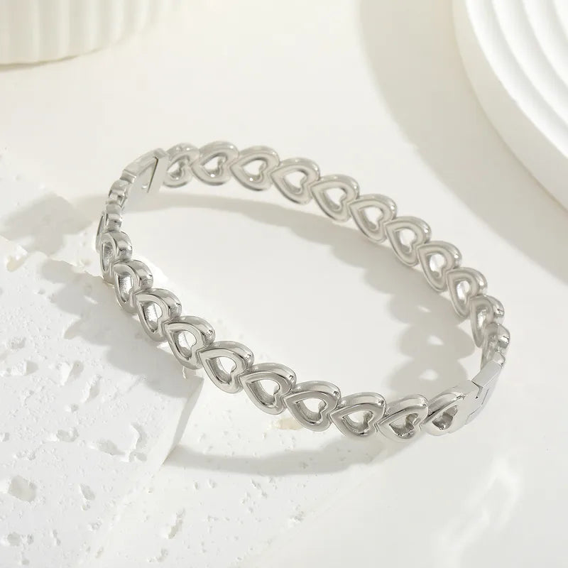K04 - Pulso de corazones. Color plateado. Acero inoxidable.