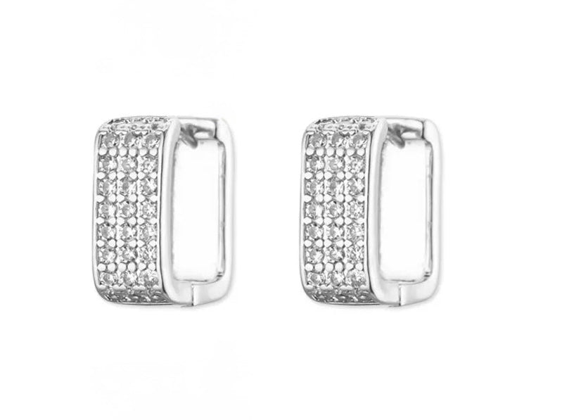 P09 - Arracadas cuadradas chicas con circonias. Color plateado. Acero inoxidable.