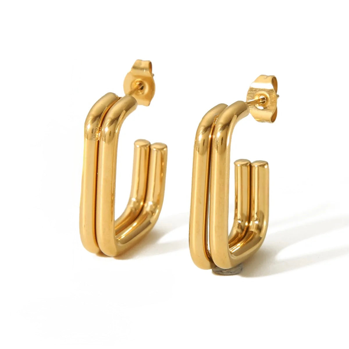 P11 - Arracadas cuadradas dobles, medianas. Color dorado. Acero inoxidable.