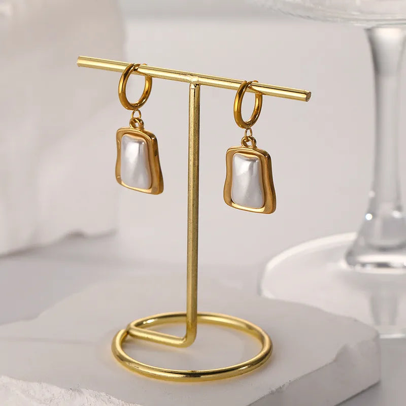 P15 - Arracadas con dije de perlas. Color dorado. Acero inoxidable.